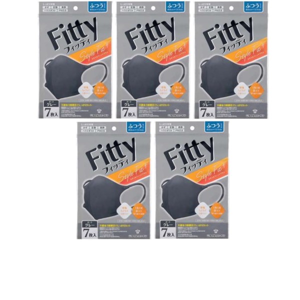 [タマガワエーザイ] (5個セット) フィッティ スタイルフィットプラス 立体 7枚入り ダークグレー ふつうサイズ マスク