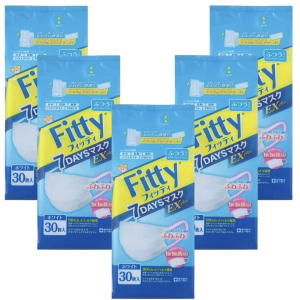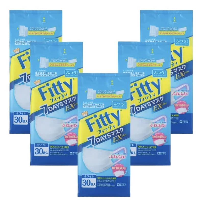 【5個セット】フィッティ 7DAYSマスク EXプラス ふつう 30枚入 【マスクケース付き】