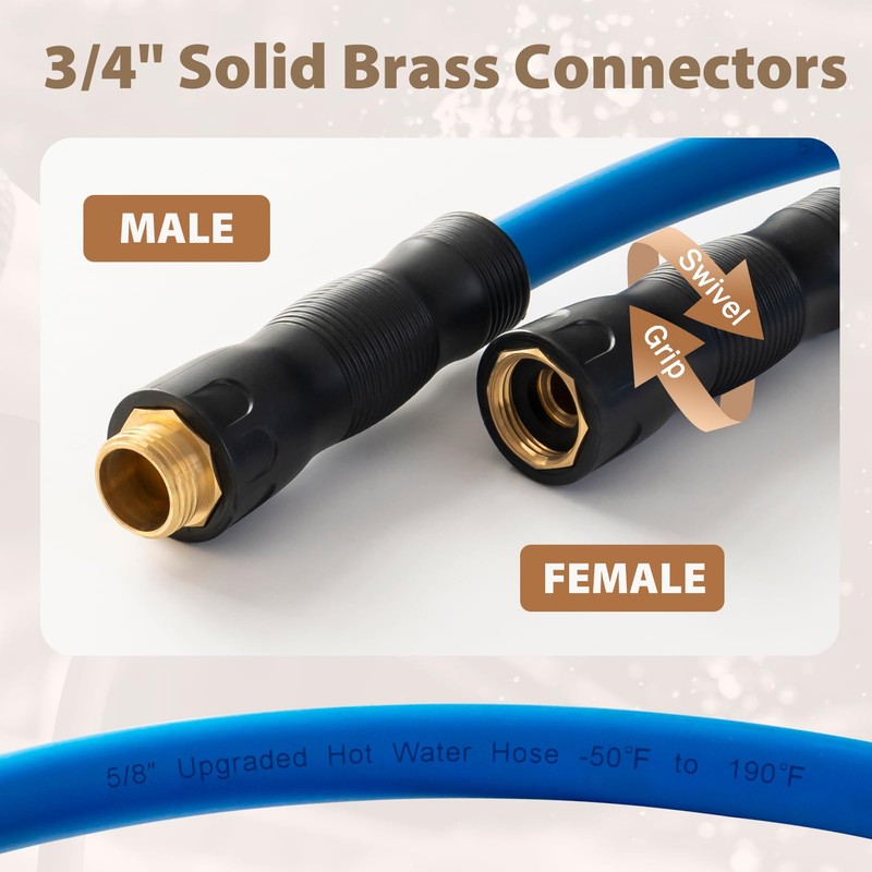 5/8" Hot/Cold Water Hose 25ft, -50℉ To 190℉ Heavy Duty,Flexible,Burst 600 Psi 3/4" Brass Fittings with Swivel Grip Handle for Outdoor,Yard, Farm, Blue