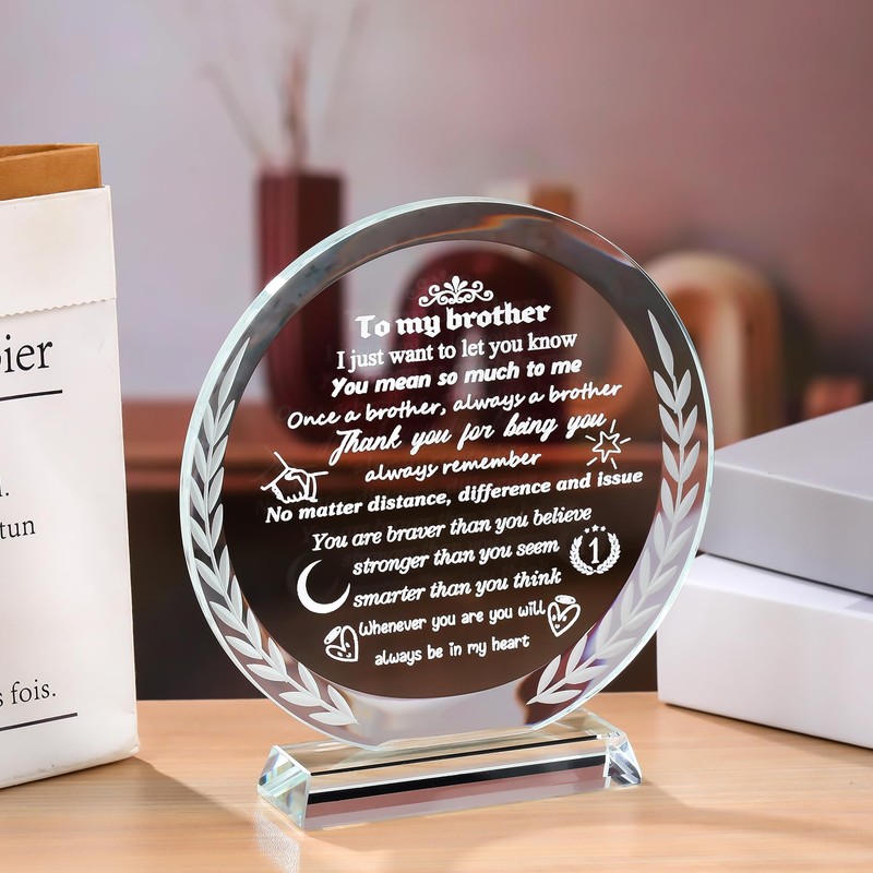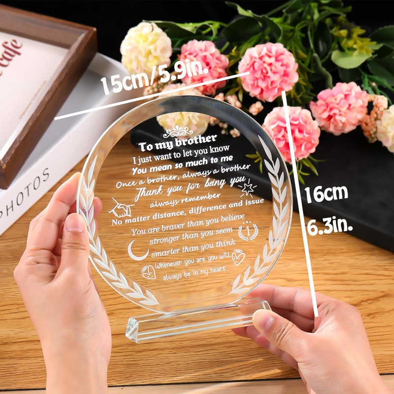 - 【Special Design】If you want to give your brother a gift that he'll cherish for years to come, this elegant glass keepsake is the perfect choice. It is such a unique gift as a daily reminder that he is special, and It is a Good Way to Express Your Thanks and Gratitude to Your brother. It will bring back amazing memories when your brother sees it every time
