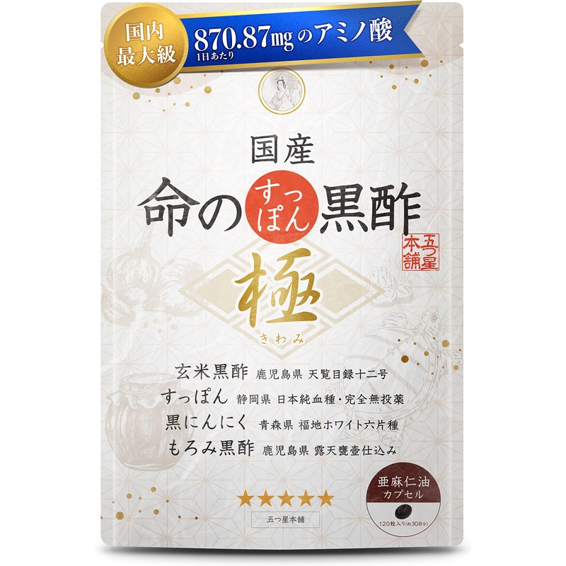 国産 命のすっぽん黒酢 極 (きわみ) 天皇陛下の天覧品黒酢 黒にんにく すっぽん 亜麻仁油 5-ALA サプリメント 5ala 120粒 1ヶ月分 極み