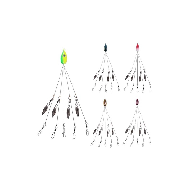 5 Arms SEASHARK Alabama Umbrella Rig with 4 Blade for bass Fishing Rigs Lure Saltwater Stripers Swim Bait Ultralight Tripod Bass Lures Bait Kit Junior Ultralight Willow Blade Multi-Lure Rig 5pcs