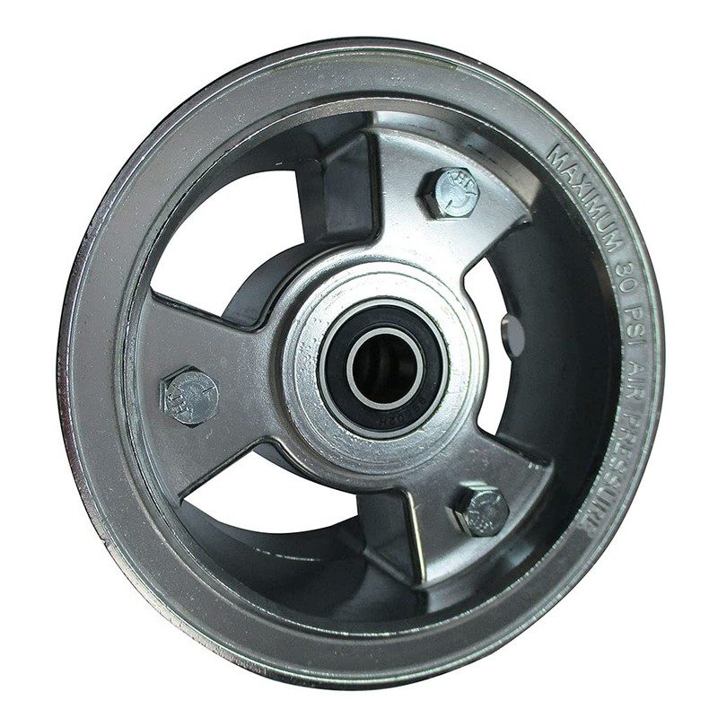 5" AZUSA Aluminum Tri-Star Wheel - 3" Wide. 5/8" Precision Bearings included.The AZUSA 5" Tri-Star Wheel features: 5/8" Precision Bearings included 3.75" bolt circle Ball-burnished finish Bead biting edges prevent slipping Split rim design for easy tire mounting This custom aluminum wheel is 3" wide.