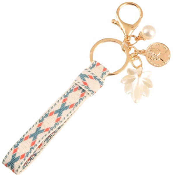 [アミリー] 5種類 ゴールドキーリングストラップ チャーム ベージュ ブランド おしゃれ 可愛い リング レディース アクセサリー(リーフ&パール)