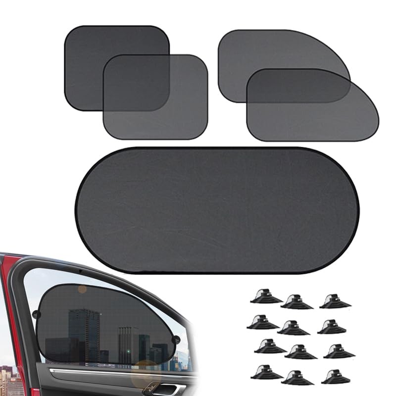 車用メッシュサンシェード 吸盤式 車用 日よけ5点セット夏用遮熱 運転席助手席遮光サンシェード汎用性カー用品フロントガラス 日よけ 折りたたみ 簡単着脱