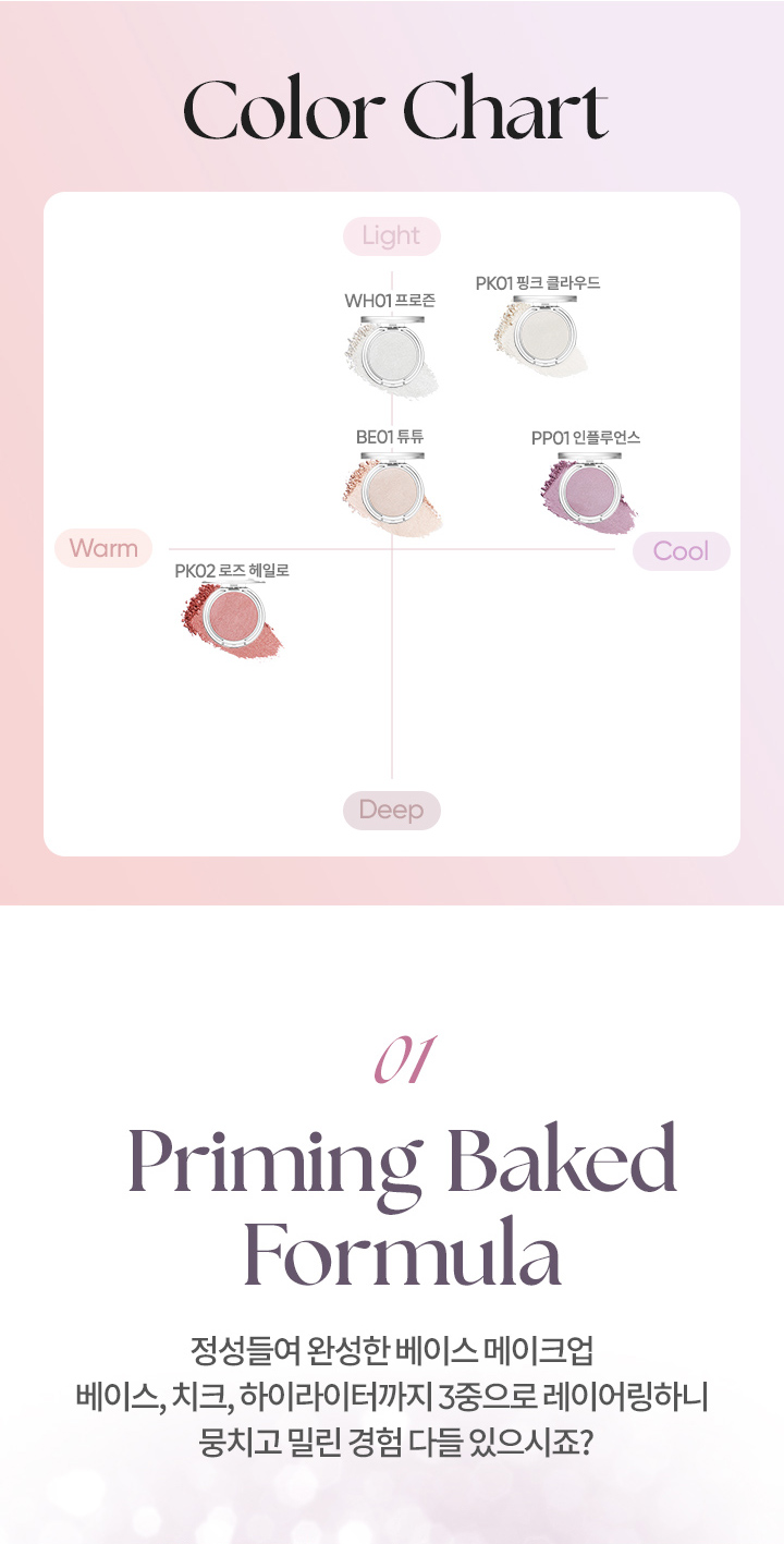 - all_ingredients_required_by_cosmetic_law: WH01 Frozen Mica (CI 77019), Dimethicone, Titanium Dioxide (CI 77891), Synthetic Fluorphlogopite, Calcium Titanium Borosilicate, HDI/Trimethylolhexyl Lactone Crosspolymer, Silica, Magnesium Myristate, Glycerin, Pentylene Glycol, Polymethylsilsesquioxane, Magnesium Stearate, Polysorbate 20, Sodium Acrylate/Sodium Acryloyldimethyl Taurate Copolymer, Magnesium Aluminum Silicate, Triethoxycaprylylsilane, Sorbitan Olivate, Sorbitan Stearate, Isohexadecane, Vinil Dimethicone/Meticone Silsesquioxane Crosspolymer, Ethylhexylglycerin, Polysorbate 80, ... For more details, check CJ ONSTYLE
