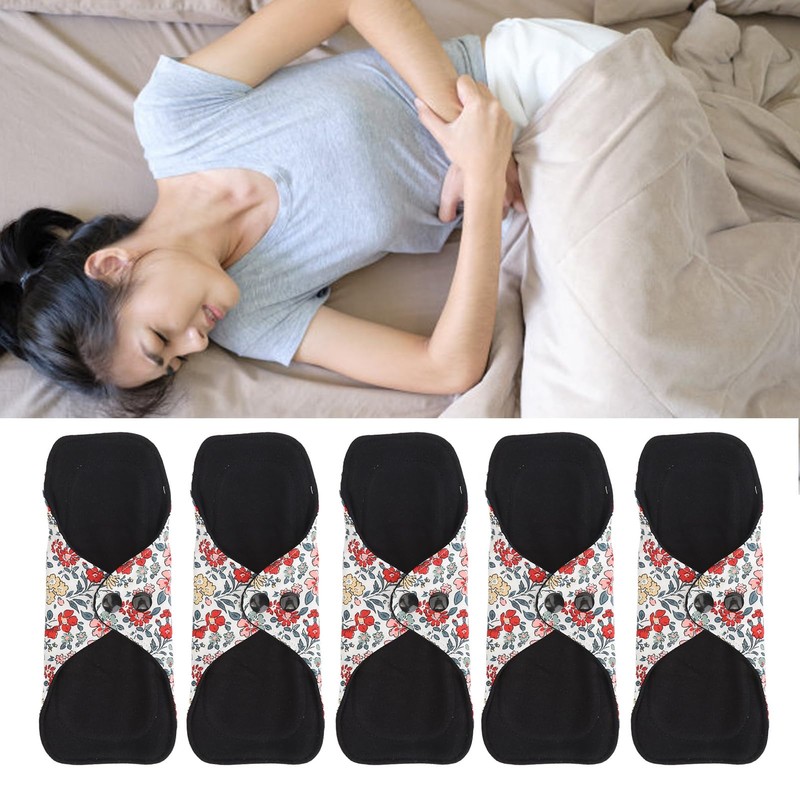 5 Compresas Femeninas Reutilizables, Toallas Menstruales de Tela de Carbón, Toallas Sanitarias Reutilizables, Productos de Higiene Lavables de Algodón Transpirables y Respetuosos