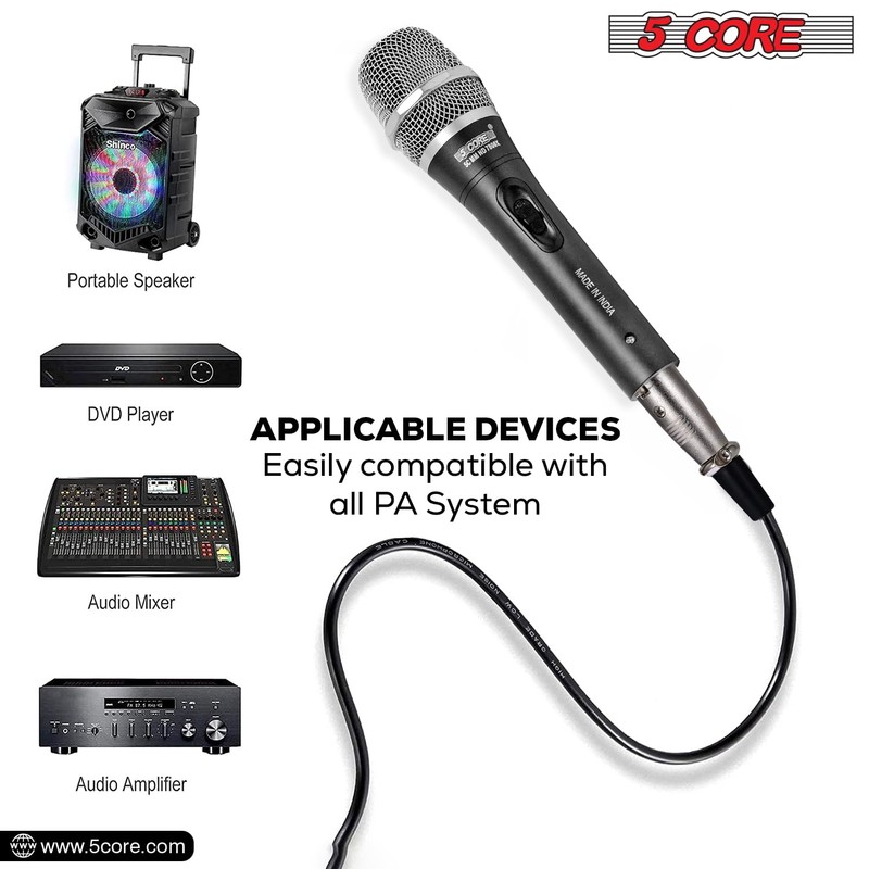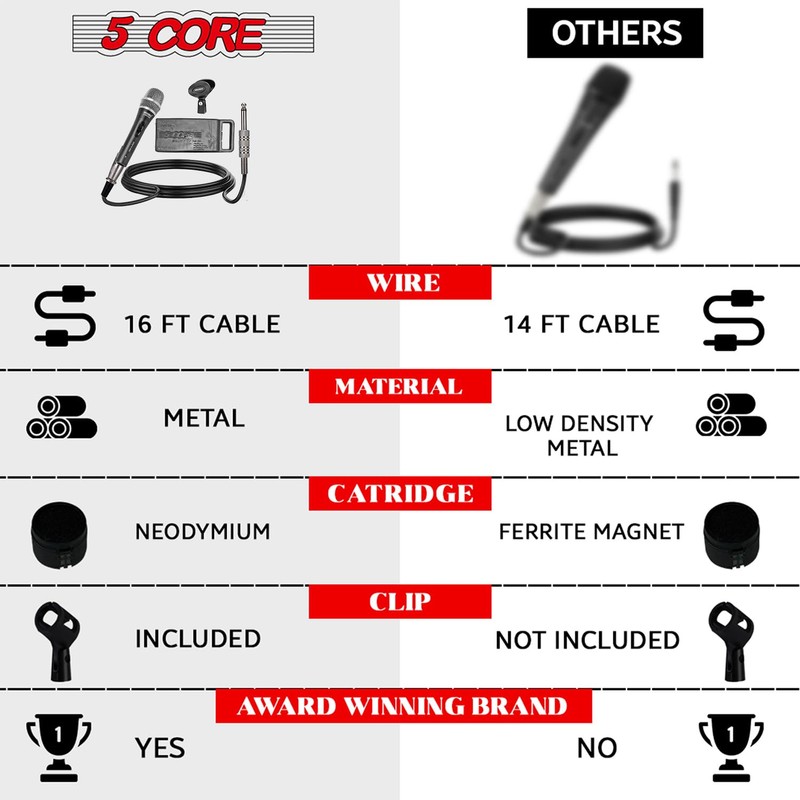 5 CORE Professional Dynamic Unidirectional Vocal Microphone with Steel Mesh Grille, Neodymium Cardioid Pickup, XLR Connectivity, 16ft Detachable Cable, Mic Clip, and Case
