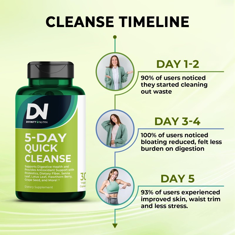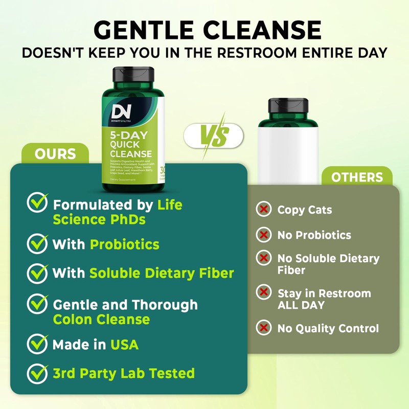 - Overall Gut Microbiome& Digestive Health: DN 5 Day Cleanse encourages a healthy colon and helps eliminate toxins, working in harmony with your body's natural detoxification process.