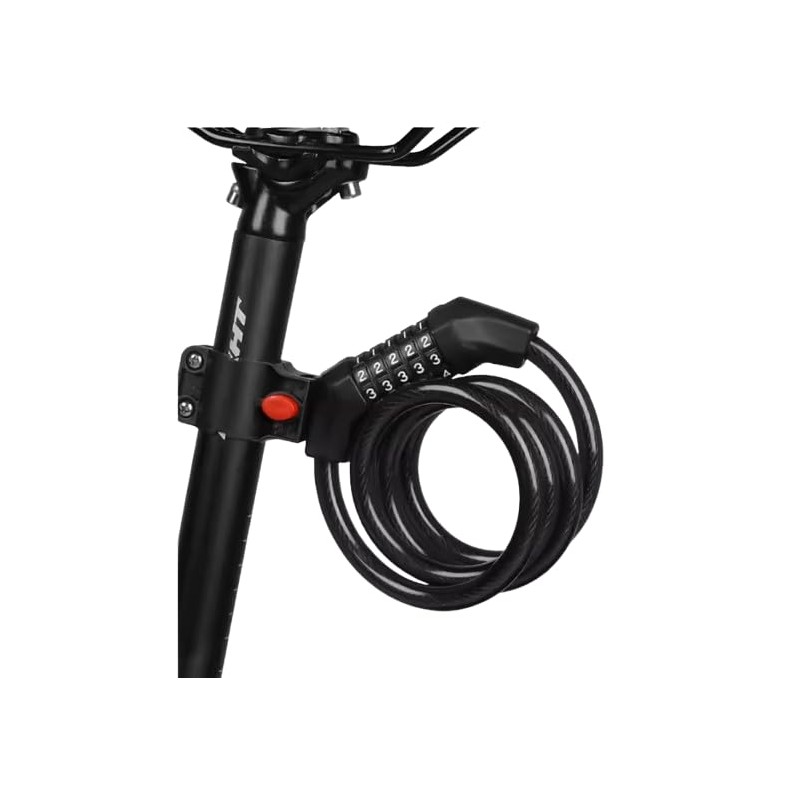 - Secure 5-Digit Combination: Advanced locking mechanism with over 100,000 possible combinations — no keys required. Carbon Steel Cable Core: Tough, cut-resistant construction for reliable everyday protection. Weatherproof & Rustproof: PVC-wrapped cable with a zinc alloy lock head resists rain, dust, and corrosion. Mounting Bracket Included: Attaches easily to most bike frames or seat posts (fits 2–3.5cm diameters) for convenient on-bike storage. Eco-Friendly Coating: Odor-free, scratch-resistant, and made with environmentally safe materials.
