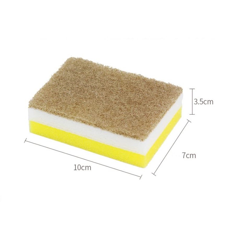 5 esponjas de limpieza resistentes, esponja de doble cara para cocina, esponja de limpieza profunda multiusos (café, blanco y amarillo)