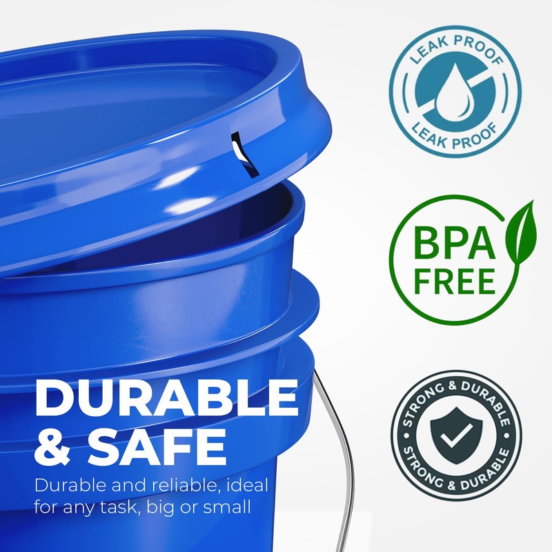 • MULTI-USE: Make storage a breeze with these multi-purpose 5-gallon buckets. Perfect for storing liquids, powders, oils, paints, fire chips, charcoal, as well as for fermenting and brining.