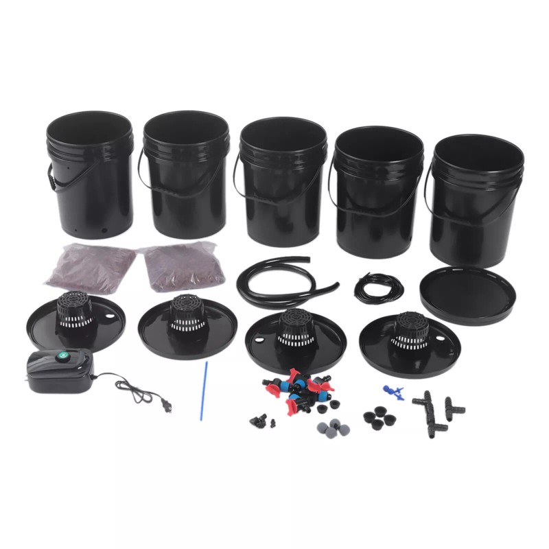 5 Gallon Round Bucket Deep Water Culture DWC Hydroponic Grow System Kit Set of 5