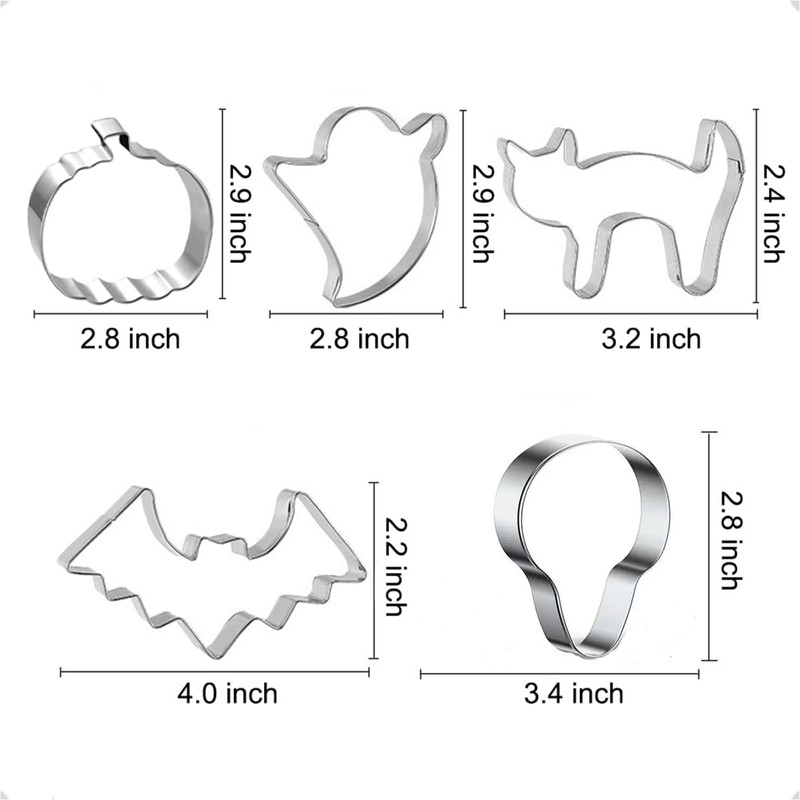 - Halloween Cookie Cutter Set: 5 pieces of Halloween themed cookie cutter molds, including pumpkin, bat, ghost, skull and cat cookie cutter shapes. Perfect for handmade cookies and weird snacks