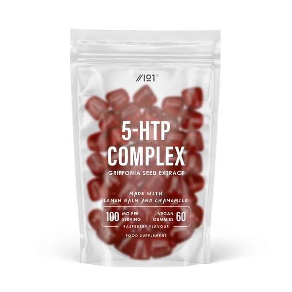 5-HTP Gummies - Bedtime Gummies with Chamomile & Lemon Balm Extracts, Raspberry Flavour - 60 Gummies. 1 Pack