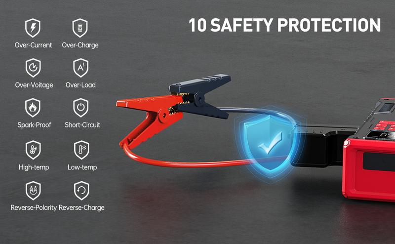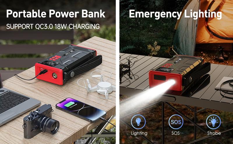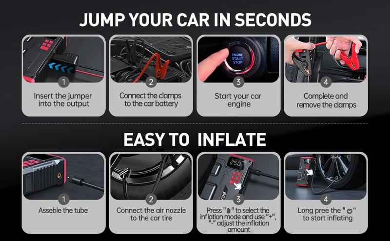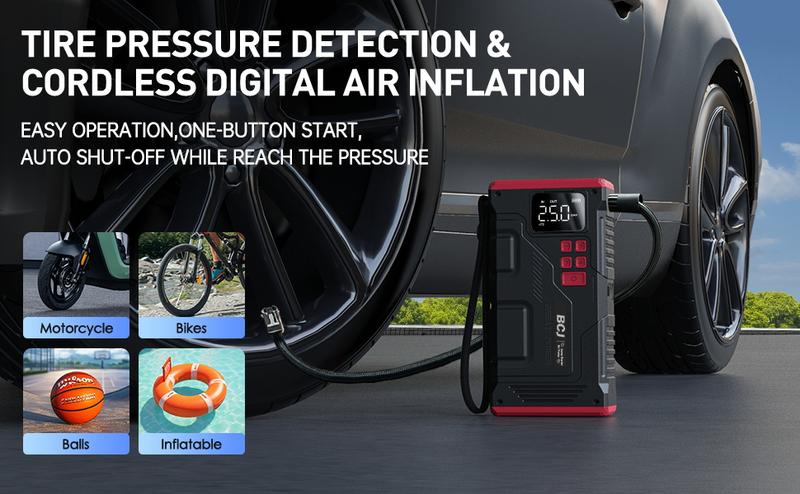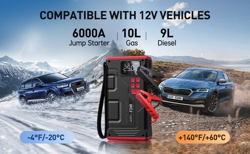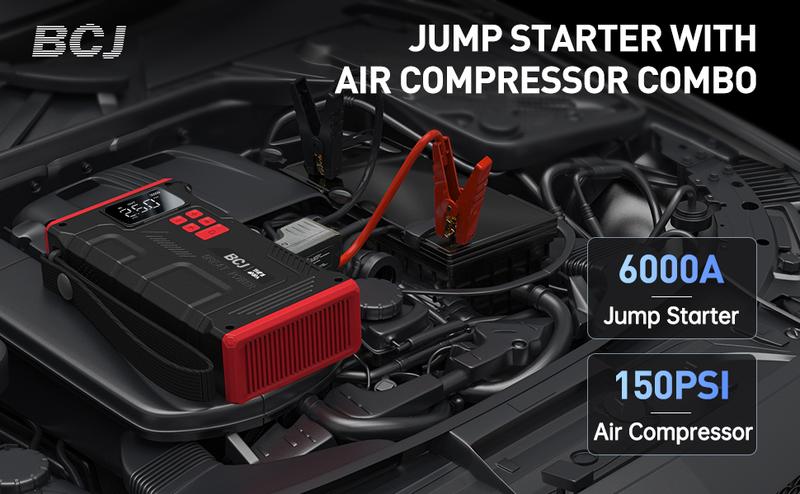 【5-in-1】6000A BCJ Portable Car Battery Jump Starter with Air Compressor(10L Gas/9.0L Diesel), 12V 150PSl Digital Tire Inflator, LED Light
