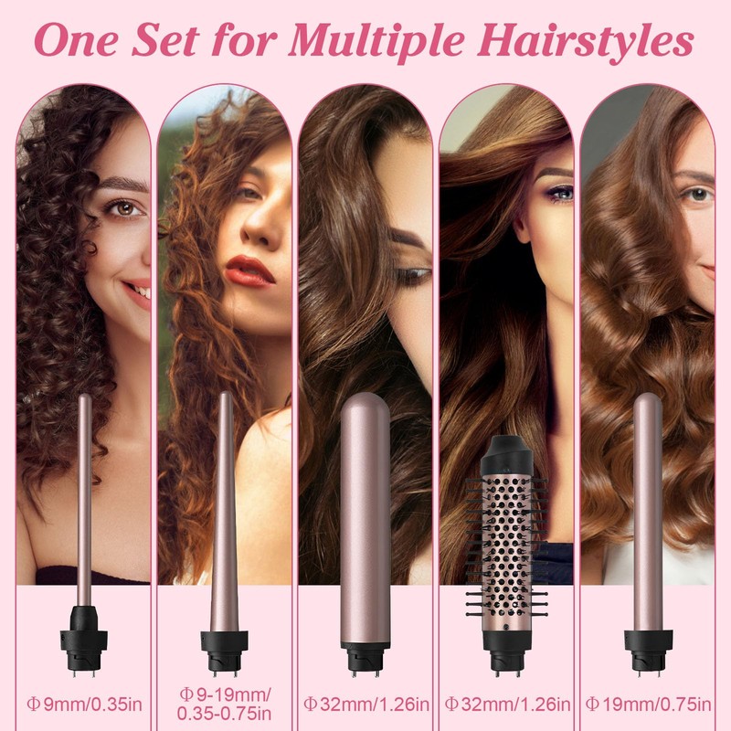 - 【5-In-1 Curling Tools】This professional curling iron brush set includes 1.26 inch curling brush and different size of cylinder curling wand barrels (1.26'', 0.35-0.75", 0.75", 0.35''), providing a super personalized experience, allowing you to easily achieve different curl sizes and styles, making charming hairstyles