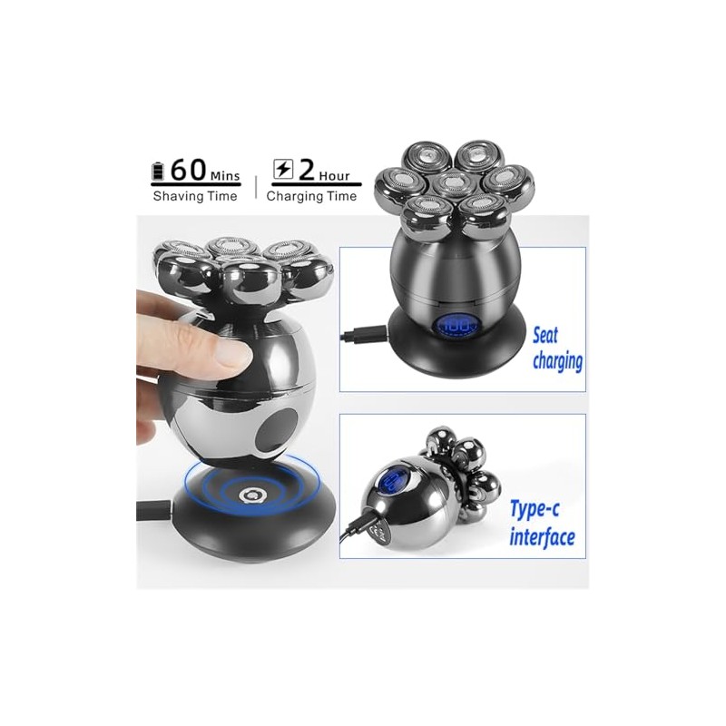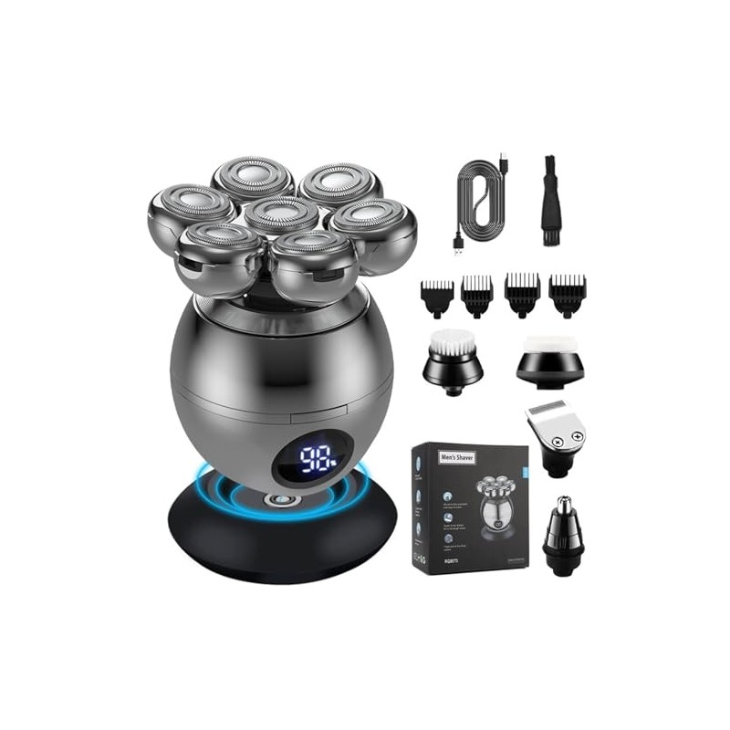 5-in-1 Electric Head Shaver for Bald Men,Rotary Design Head Shavers,Electric Men's Grooming Kit, with Rotary Blades, Clippers, Nose Trimmer, Brush, Massager,Cordless, and Rechargeable
