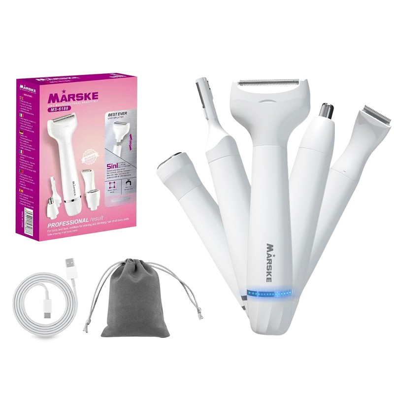 5 in 1 Facial Hair Removal and Bikini Hair Trimmer for Women, Nose Eyebrow pubic Hair Trimmer,Replaceable Electric Razors, Waterproof Electric Shaver Easy Cleaning, Women's Grooming Kit