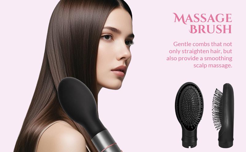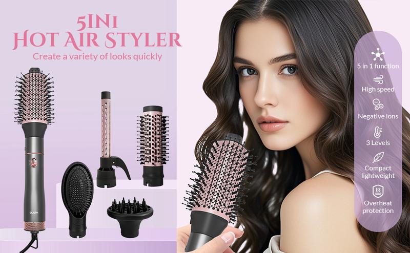 5 in 1 Hair Dryer Brush Blow Dryer Brush Set, Hot Air Styler with Multiple Lengths Suitable for Variable Needs for Hair Curling, 3 Temperature and Wind Settings, Travel Bag