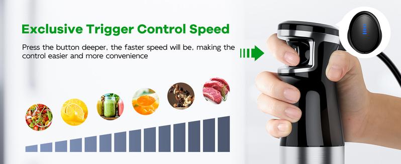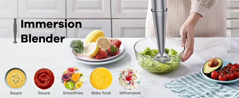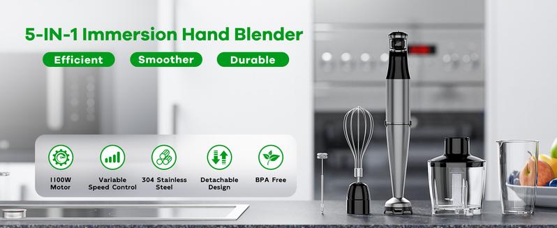 【5 in 1】Immersion Blender Handheld Hand Blender 1100W, Trigger Variable Speed 5 in 1 Stick Blender, Emulsion Blender with Chopper, Whisk and Frother for Soup, Baby Food and Smoothies, Best Gift