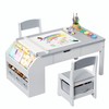 - SPACE SAVING: Hidden storage compartments and large drawers are cleverly integrated underneath the kids craft table, and the spacious side double shelves and 3 removable storage drawers make it easy to organize books, drawing tools, toys and other essentials. The toddler table and chair set’s mobile design allows you to easily set it up in a child's room, playroom, daycare center or tutoring facility.