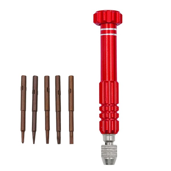 5-in-1 Multifunctional Small Magnetic Precision Pocket Mini Screw Driver Set for Eyeglass,Watch, Smartphone, Tablet, Jewelry Repair Tool Kit-Red
