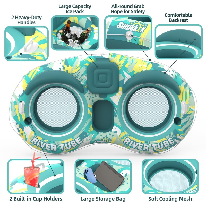 Sunikko X 5-in-1 Pool Floats Adult Heavy Duty River Tube, 2 Person Water Loun...