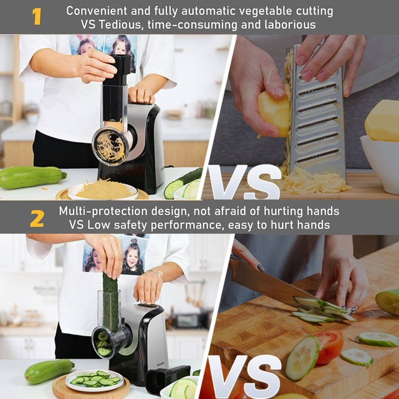 - 👋【150W Power Save Your Time】Our cheese grater is equipped with a powerful 150W motor, which allows you to prepare food quickly, cut and chop ingredients efficiently, and save your cooking time.