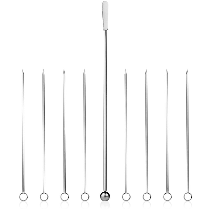- HIGH QUALITY 304 STAINLESS STEEL - Made of the highest quality stainless steel, these are sturdy, sleek and elegant. Both the picks and stirrer have simple sophisticated design for the right weight, balance, and functionality.