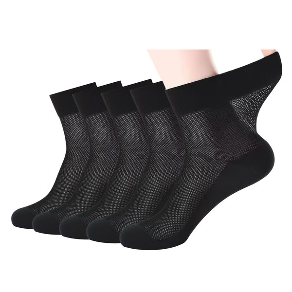 [雲見] 靴下 メンズ 夏 ソックス メンズ【靴下 メッシュ 5足セット】 通気性 抗菌消臭 綿 涼しい 吸汗 蒸れない 柔らかい ビジネス 紳士 通勤 通学 くつ下 (JP, アルファベット, Free Size, ブラック)