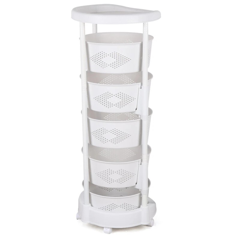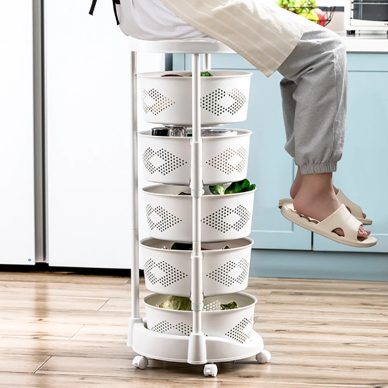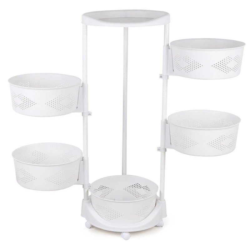 5 Layer Kitchen Rotating Organizer Rack Fruit Vegetable Storage Basket w/ Wheels