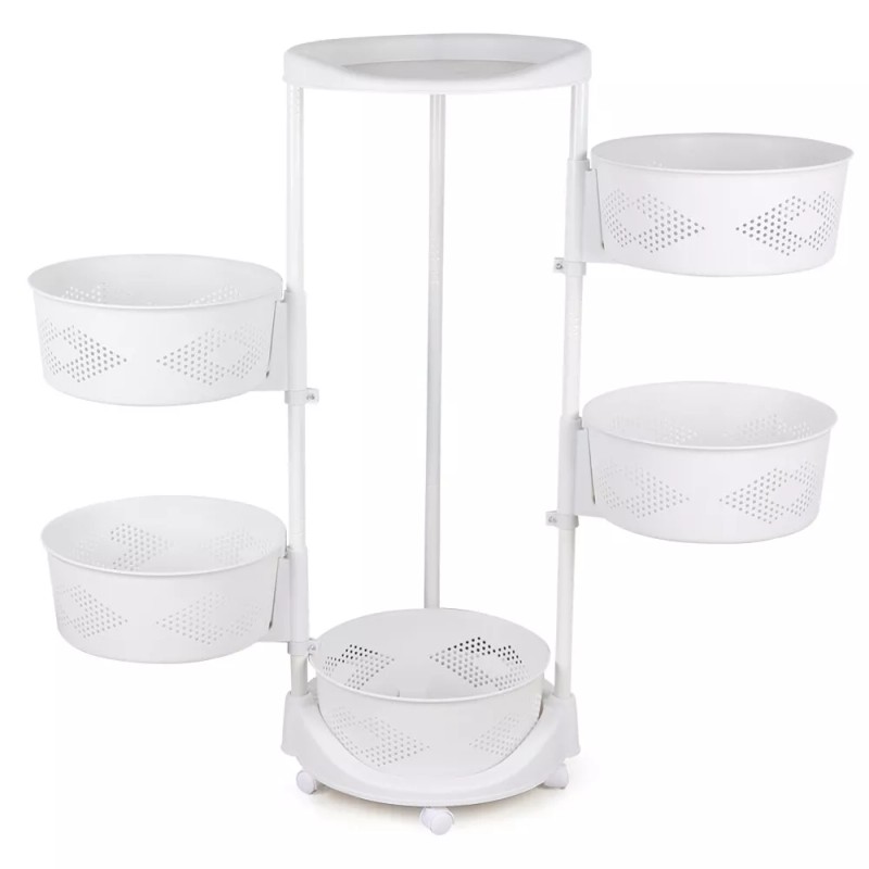 5 Layer Kitchen Rotating Organizer Rack Fruit Vegetable Storage Basket w/ Wheels