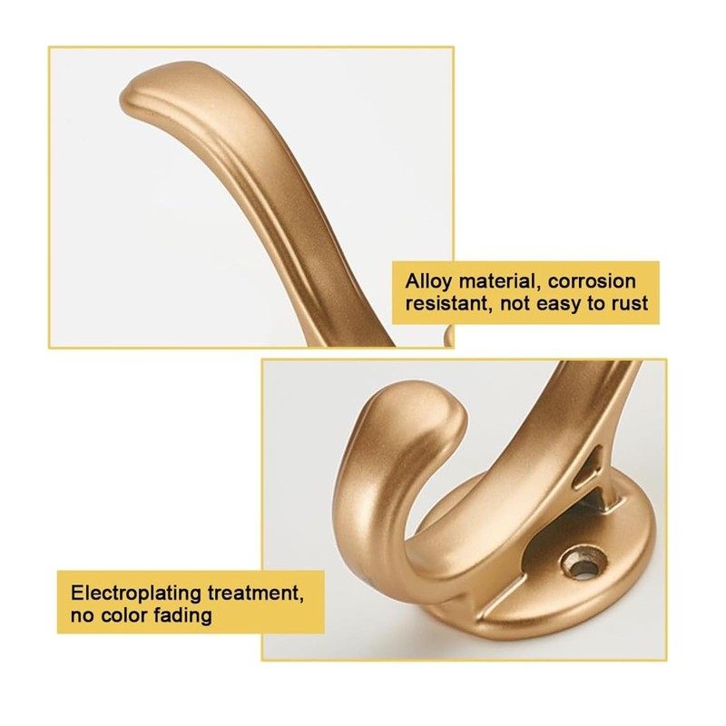 - Alloy material: coat hook gold is made of high quality aluminum alloy material, the interior is solid material, rust and waterproof, not brittle and not easy to break. The appearance of the screw hook has been electroplated, corrosion and rust resistance, and it is not easy to fade, ensuring that you can use it for a long time.