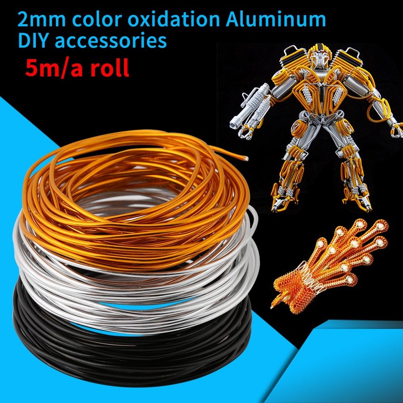 5 Metros/Rollo de 2mm de Color de Aluminio Artesanía de Alambre Artesanías DIY Herramienta de Arreglo Floral (plata)