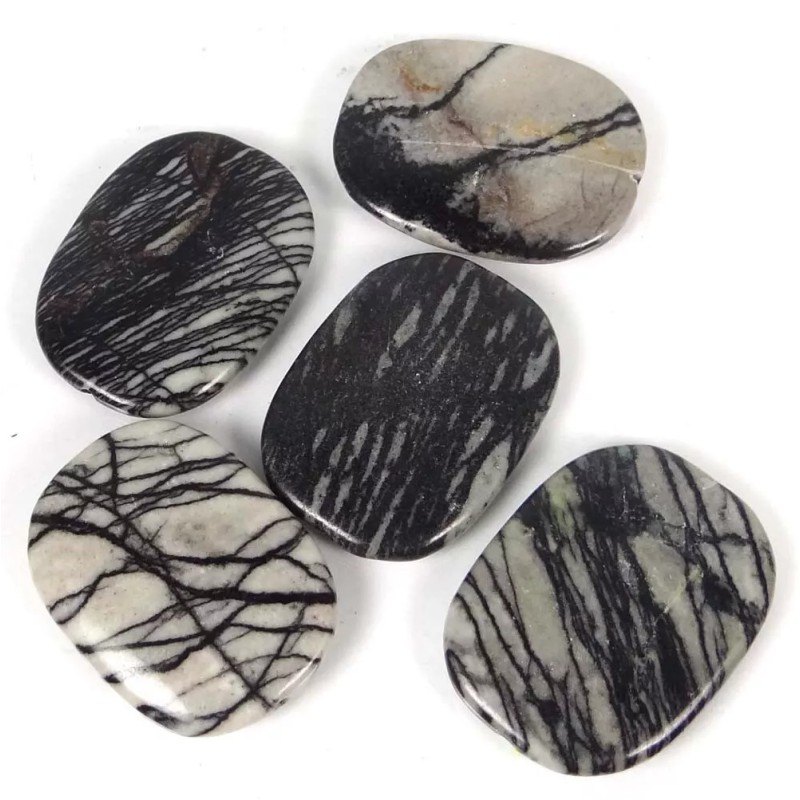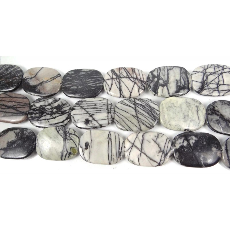 5 Natural Stone Picasso Black Lined Webbed Jasper Oval Pendant Beads 40x30mm