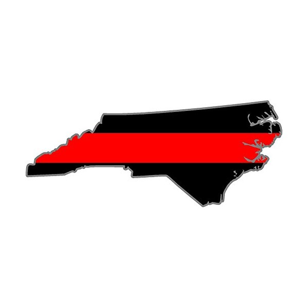 - 5" North Carolina NC Thin Red Line State Shape american flag Firefighter Sticker