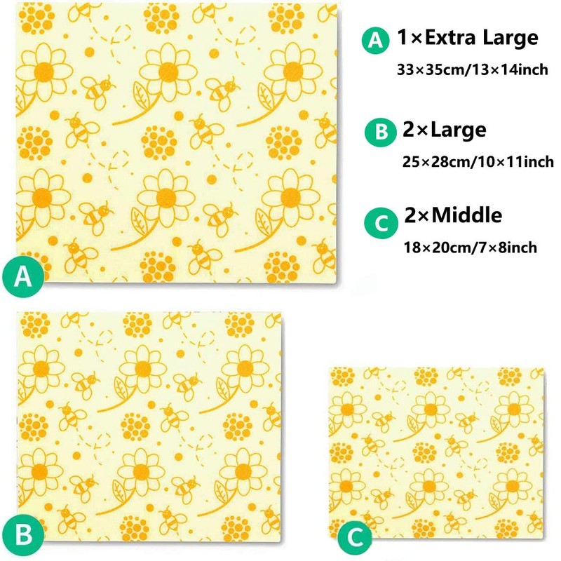 - 【Large Size & Free Cutting Design】 5 pack include: 2 - Medium (18cm x 20cm); 2 - Large (25cm x 28cm); 1 -Extra Large (33cm x 35cm). You don't have to worry about the problem of size mismatches, easily wrap up whatever sandwich, bread, cheese or fruit and other food.