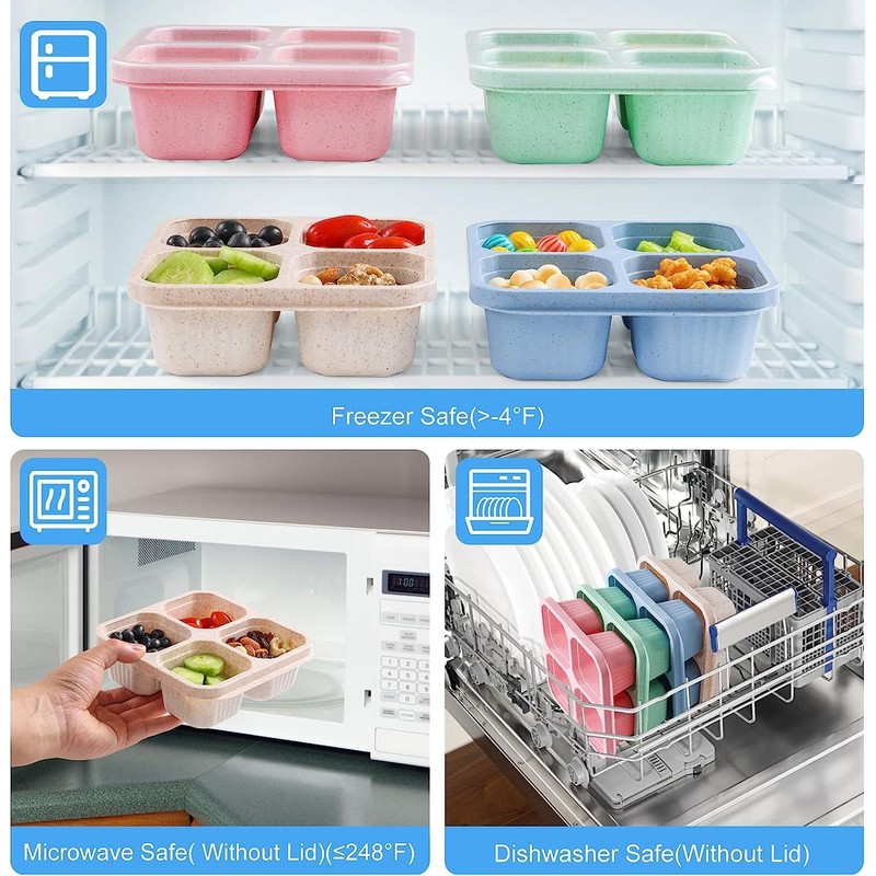 5 Pack Bento Lunch Boxes, 4 Compartment Containers, Divided Snack Box, Meal Containers, Food Storage Containers for School, Work and Travel