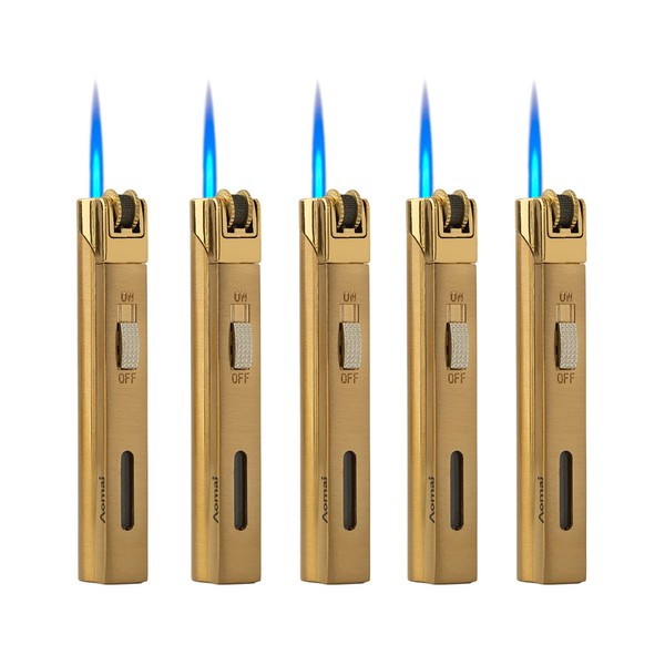 5 Pack Butane Torch Lighter Jet Flame Lockable Portable Adjustable Lighter with Fuel Visible Tank No Gas (Gold)