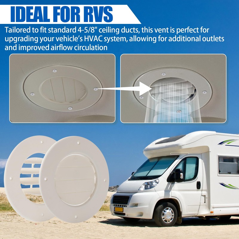 • Ideal for RVs: Tailored to fit standard 4-5/8" ceiling ducts, this rv ac ceiling vent is perfect for upgrading your vehicle's HVAC system, allowing for additional outlets and improved airflow circulation