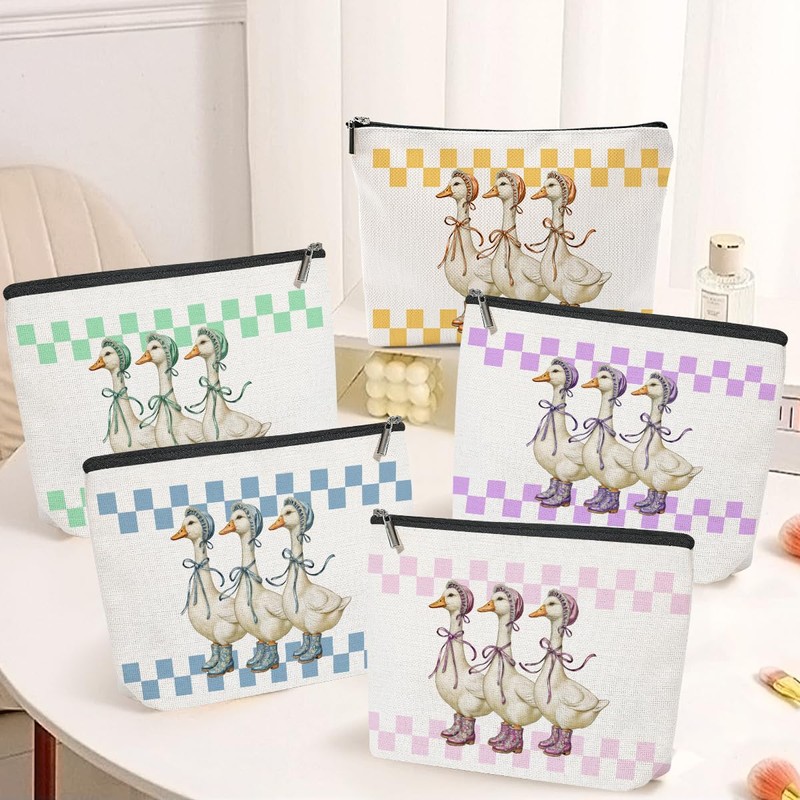 5 Pack Checkered Cute Bow Animal Goose Decor Lovers Gift Goose Gifts Makeup Bag, Cosmetic Bags for Women Grandma Nurse Coworker Boss Nurse Travel Toiletry Bag Christmas Graduation Birthday Nurse Day