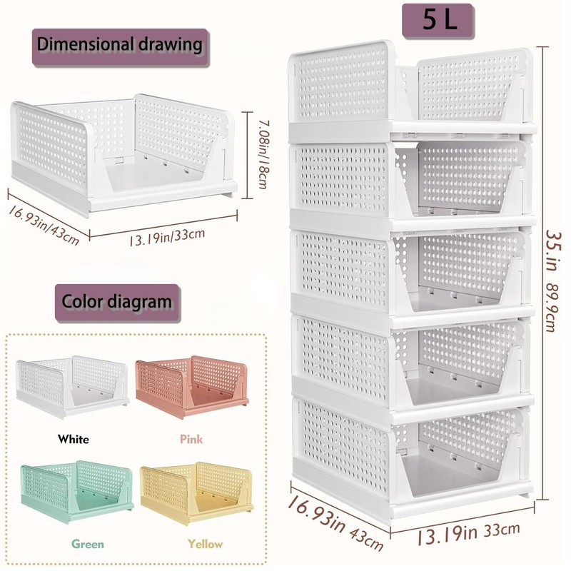 • 【5L-Stackable】Set of 5 wardrobe storage shelves can be stackable. Adjusting the closet shelves to your liking, stacking them to suit your space, and can maximize the use of vertical space.