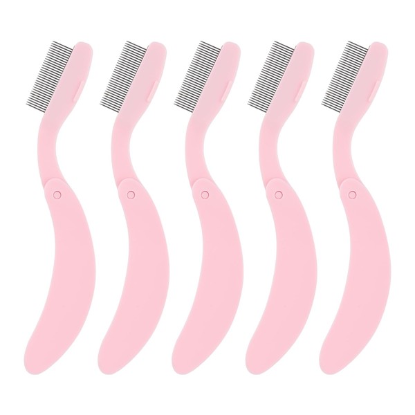 5 Pack Folding Eyelash Comb, Eyelash Separator Tool Eyebrow Comb Metal Teeth Professional Tool for Lash Brow, Pink