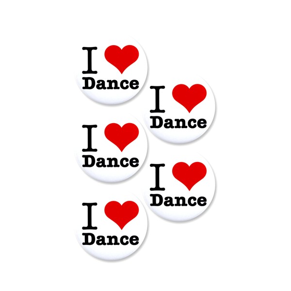 5 Pack - I "Heart" Love Dance Pinback Button Badges - 2.25 Inch