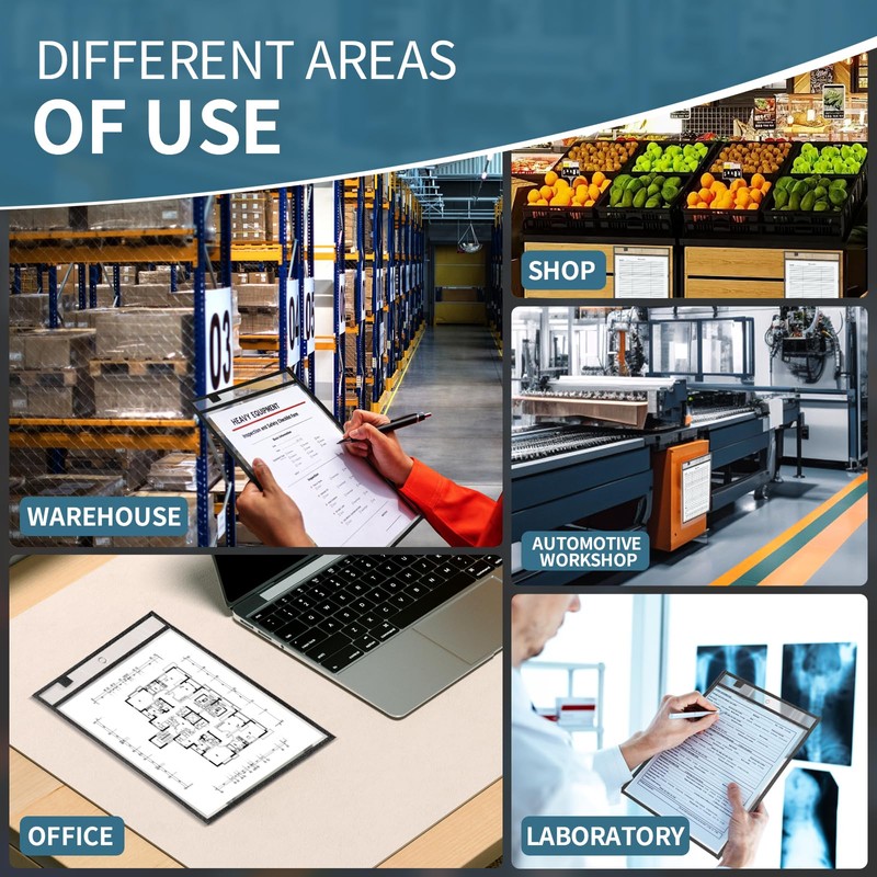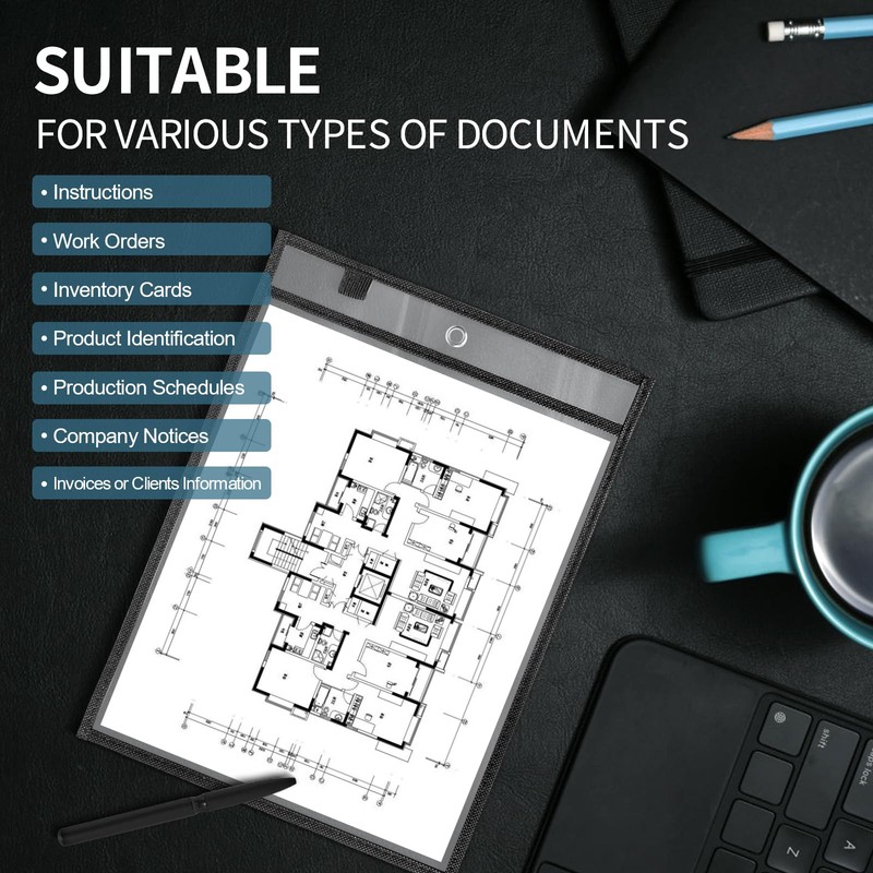 - Protect & organize docs - 9x12 plastic sleeves are water & dust resistant, it is perfect for displaying production schedules, inventory cards, work orders in industrial environmental DRY-ERASE surface is great for equipment inspections or check lists