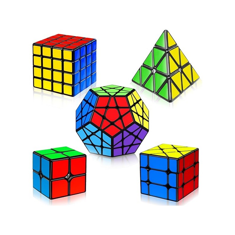 5 Pack Magic Cube Set - 2x2, 3x3, 4x4, Triangle Speed Cubes for Kids & Adults