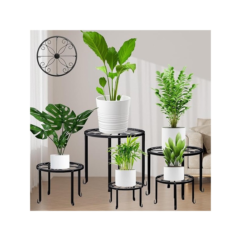 5 Pack Metal plant Stand for Outdoor Indoor Heavy Duty Flower Pot Stands for Multiple Plant, Rustproof Iron Round Shelf for Planter, Potted Plant Holder for Garden Home (Black)