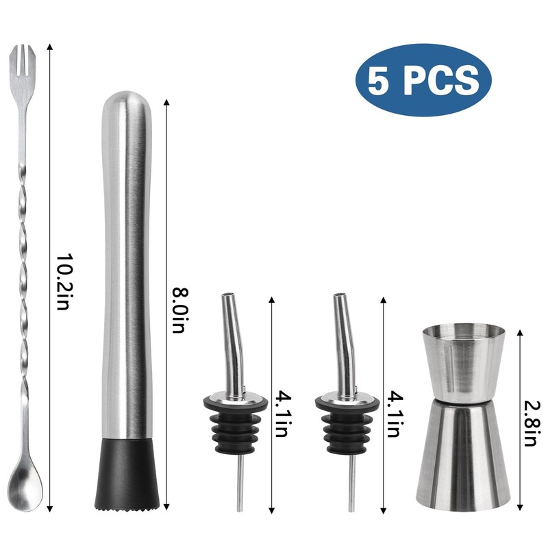 5 Pack Muddler for Cocktails Set - 304 Stainless Steel Cocktail Muddlers Versatile Cocktail Spoon, 2 Pcs Wine Pourer