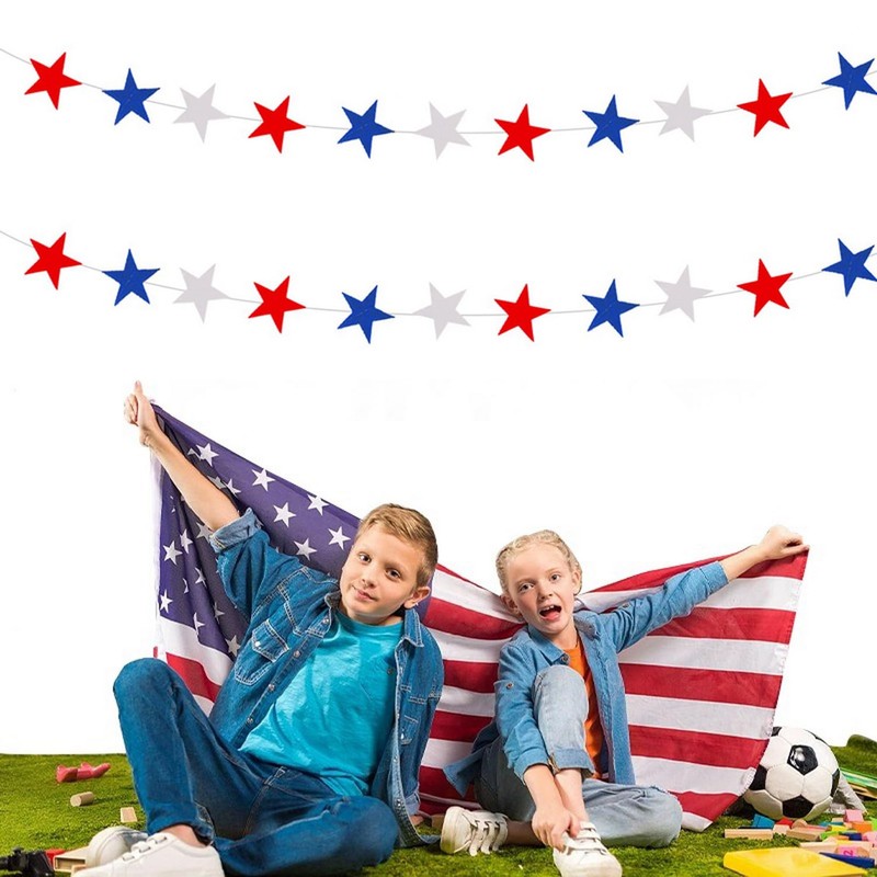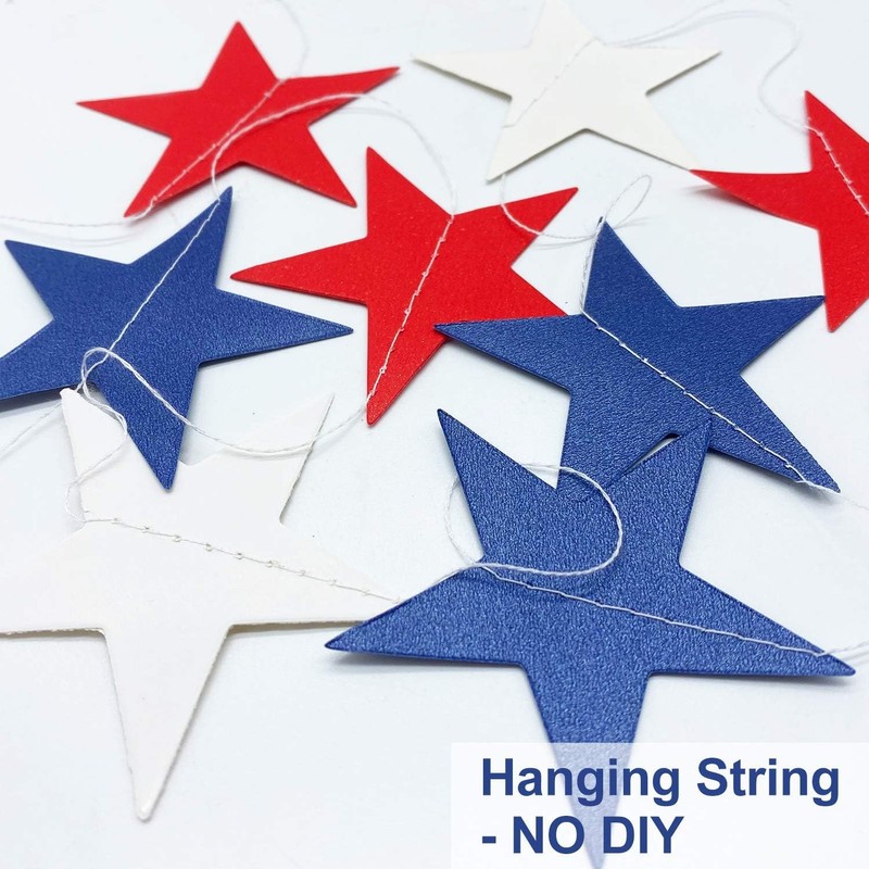 5 Pack Patriotic Red White and Blue Decorations 78Ft Star Garland Streamers Banner Independence Day 4th of July Memorial Day Holiday Party Supplies